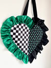 π€ Lovers Tarot Heart Tote β Cream & Black Ruffle Bag