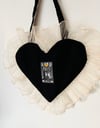🖤 Lovers Tarot Heart Tote – Black & Cream Ruffle Bag