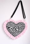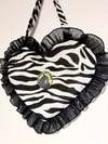 Zebra Print Heart Ruffle Bag – “No Kisses Just Hisses” Patch