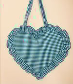 Heart-Shaped Blue & White Gingham Bag with Matching Ruffle Trim