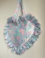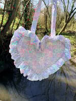 This heart-shaped bag is designed with a full ruffle trim for that romantic, feminine feel — the perfect finishing touch to any spring/summer outfit.