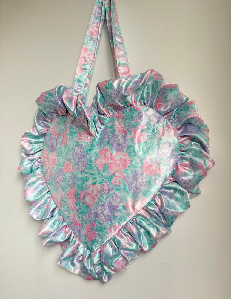 A soft, dreamy statement piece made from vintage recycled fabric in a delicate pastel floral print.