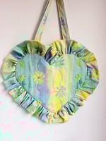 A fresh, playful heart bag made from vintage recycled fabric in a soft watercolour floral print.